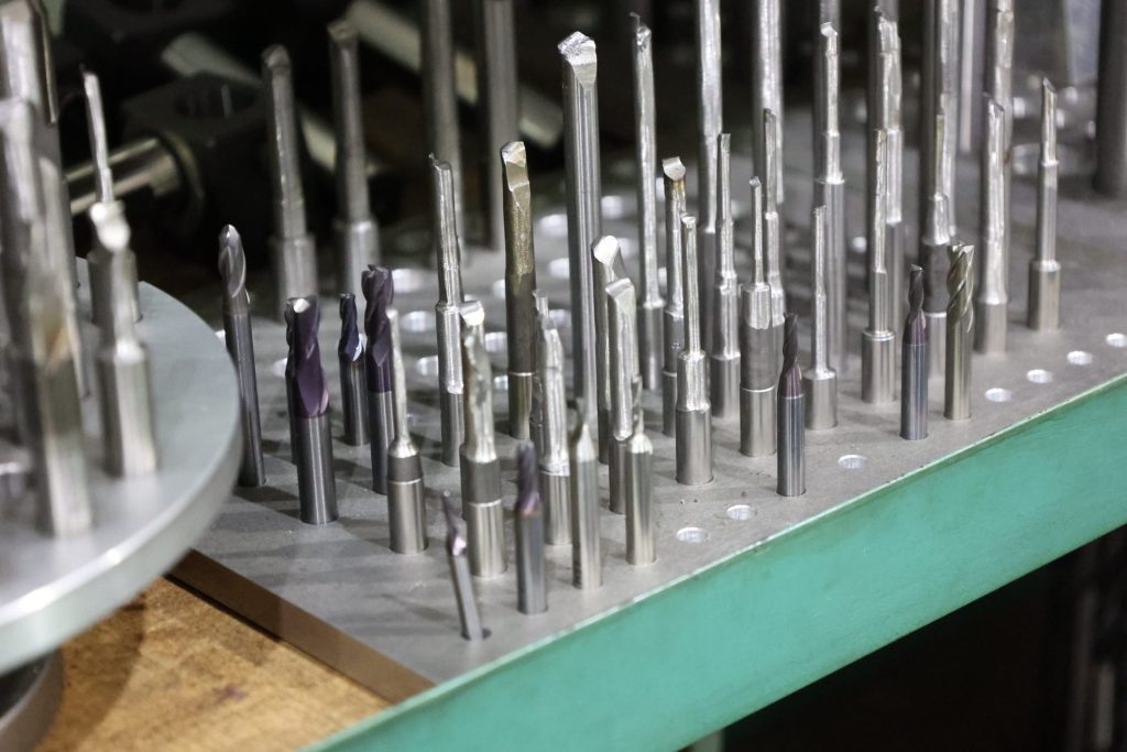 治工具の製造に用いるジグボーラーで要となる要素の一つが、バイトを研ぐ技術です。バイトの研ぎ方次第で寸法精度・面粗さ・形状が決まると言っても過言ではありません。狙う寸法精度・形状・面粗さに適した形状にグラインダーを用いて研ぐ必要があります。弊社は、このバイトの研ぎ方が一流であると評価を受けています。